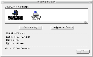 MacOS 8, MacOS 9 のコントロールパネルにある 「起動ディスク」 と何が違うかと言うと、 MacOS がなくても起動出来るような設定も出来るということです。